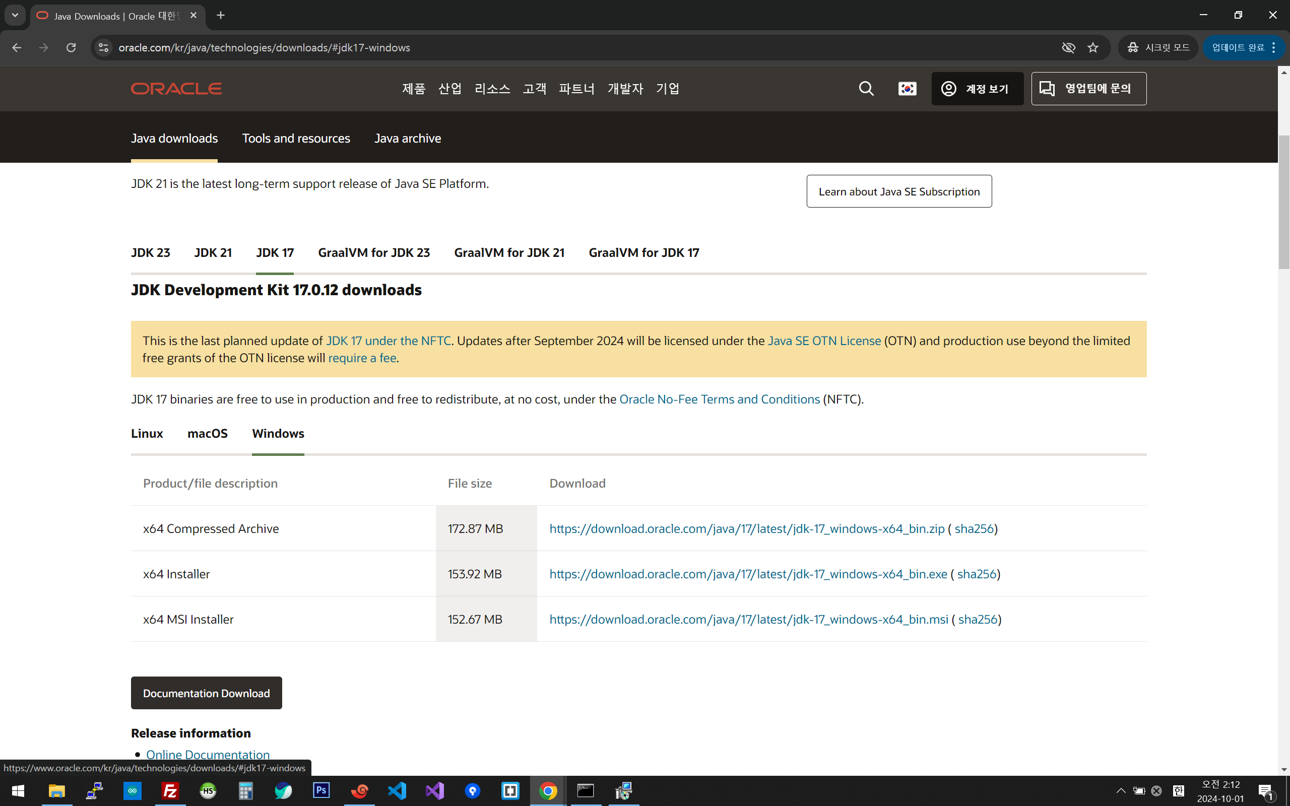 03. JDK 17 - Windows - x64 Installer 다운로드