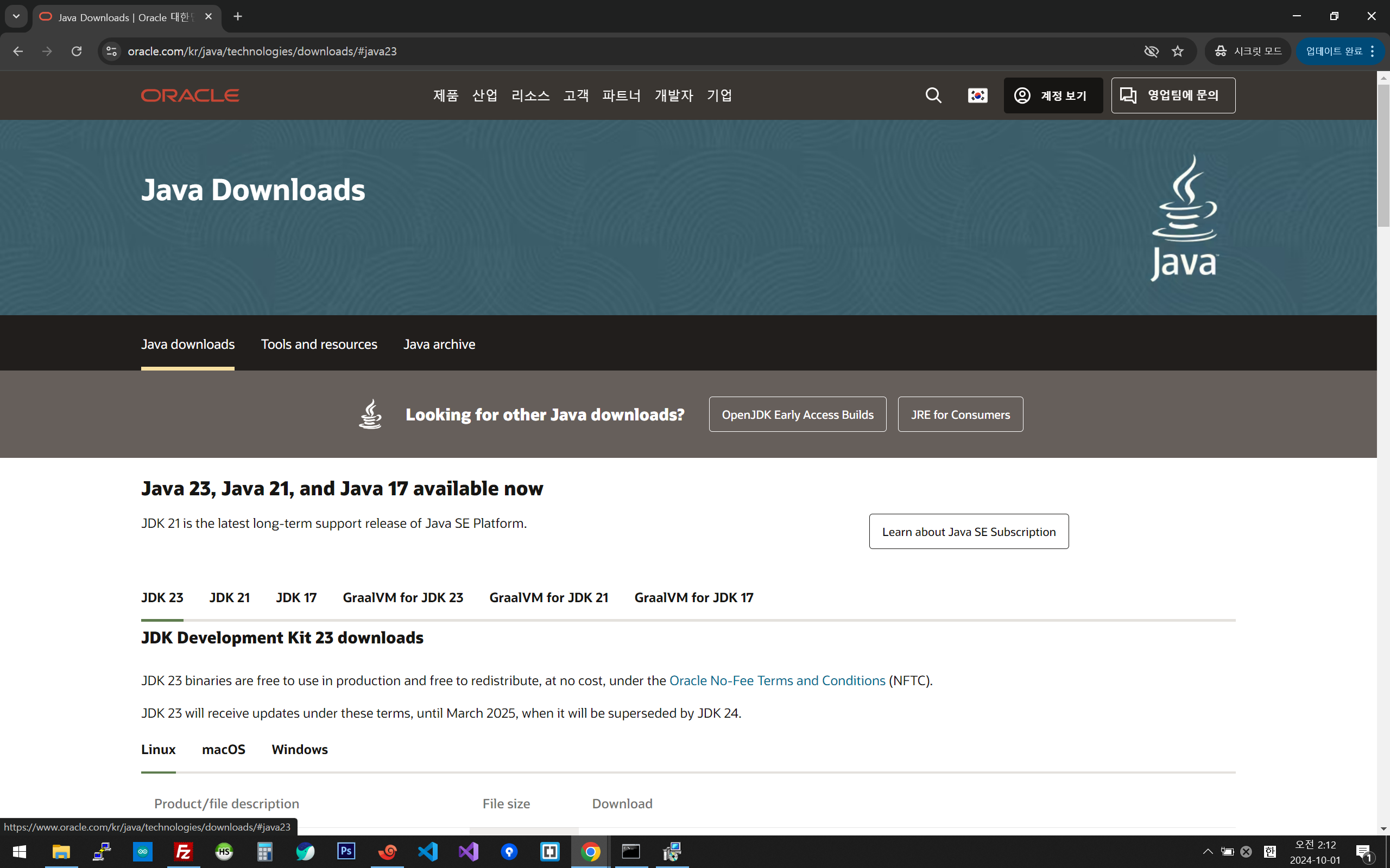 02. 오라클 홈페이지 접속 후 원하는 JDK 버전 다운로드